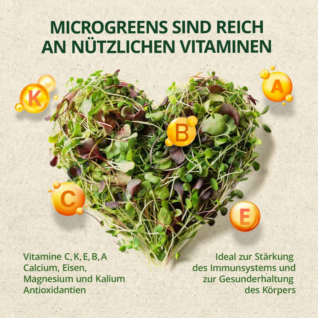 Microgreens sind wahre Kraftpakete! Sie enthalten große Mengen an Vitaminen, Mineralien und Antioxidantien, insbesondere Vitamin C, D und E. Mit dem OraGarden Keimsprosskit kannst du das ganze Jahr über frische Microgreens unter heimischen Bedingungen anbauen – egal ob im Frühjahr, Sommer, Herbst oder Winter.Frischer Geschmack in deiner Küche